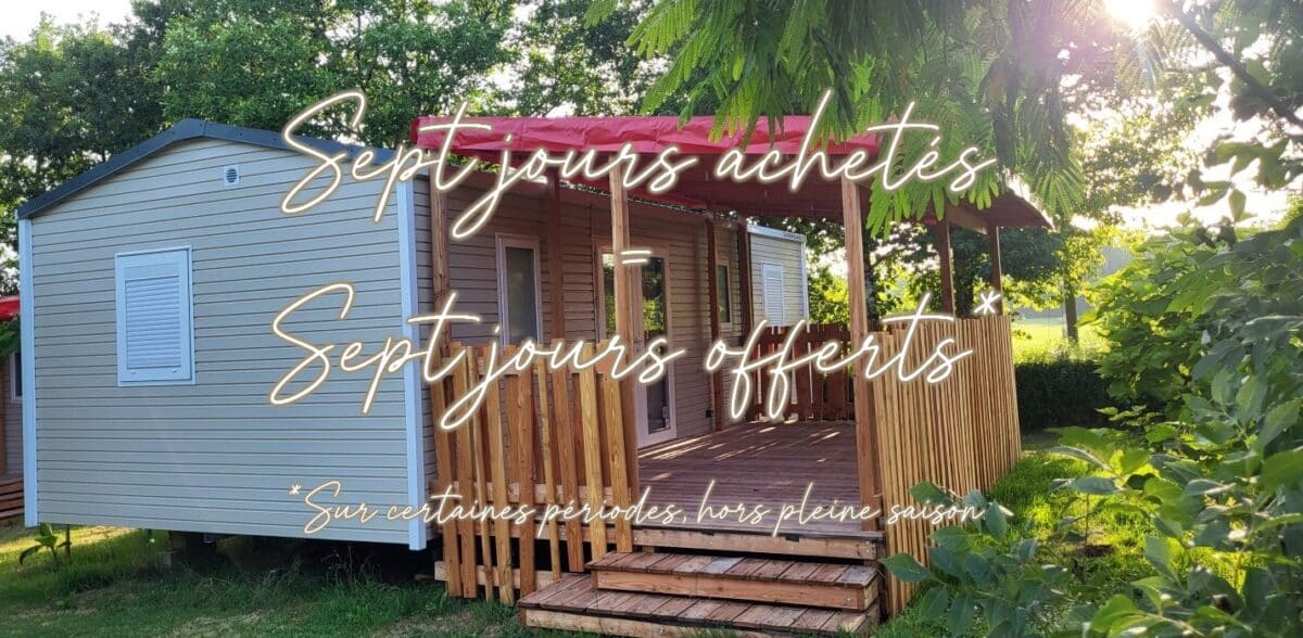 Tarifs 2026 ouverts ! Réservez vos vacances en Dordogne dans notre camping familial avec piscine — PROMO SPÉCIALE 7 JOURS ACHETÉS = 7 JOURS OFFERT sur certaines périodes hors pleine saison !